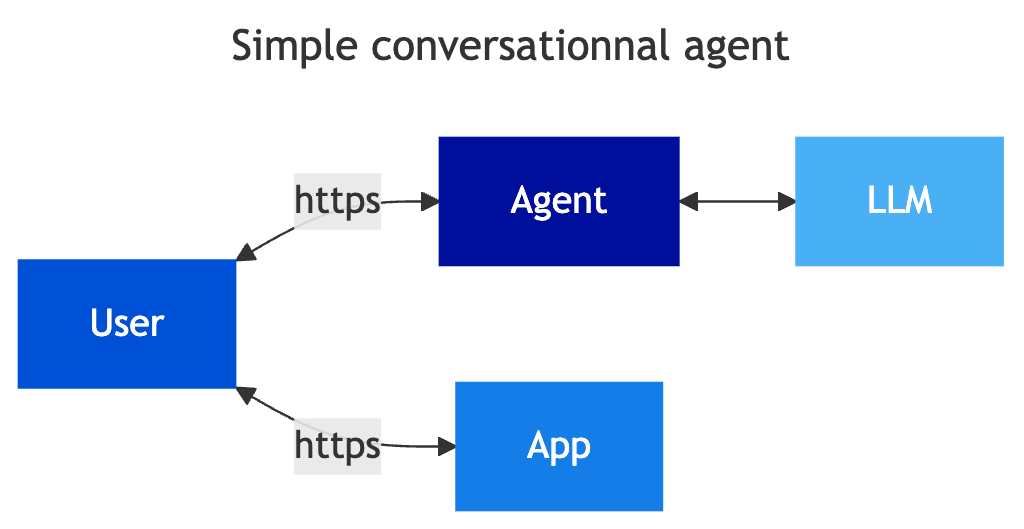 In this context, the user is the go-between managing the information transfer between the company application and the third-party agent. The agent only has access to information voluntarily sent by the user, typically via the service interface that allows prompts to be entered. These services are rapidly extending their capabilities, allowing file upload, and microphone or camera access, but we remain in a classic responsibility framework in terms of security, with the human in the loop by design.