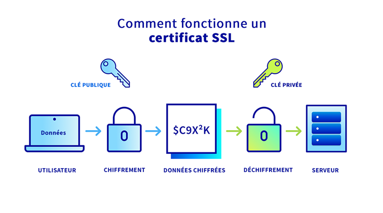 Un certificat SSL (Secure Sockets Layer) permet de chiffrer les données échangées entre un site web et ses visiteurs. Cela signifie que vos informations personnelles (comme vos mots de passe, coordonnées ou informations de paiement) sont converties en un code illisible pour quiconque essaierait de les lire ou de les modifier.