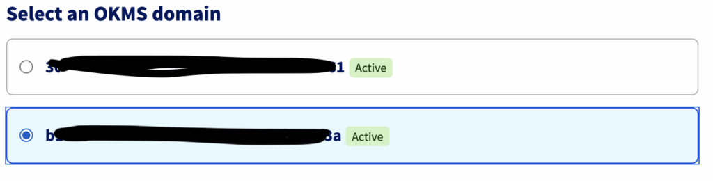 Select an OKMS domain: