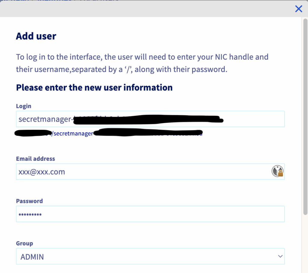 Note that I named the user “secretmanager-” following by the ID of the OKMS domain I want to use.
