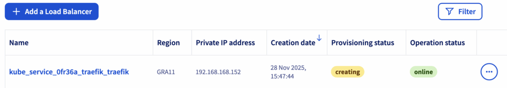 – the creation of an OVHcloud Public Cloud Load Balancer