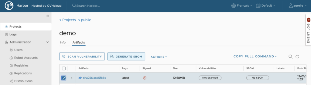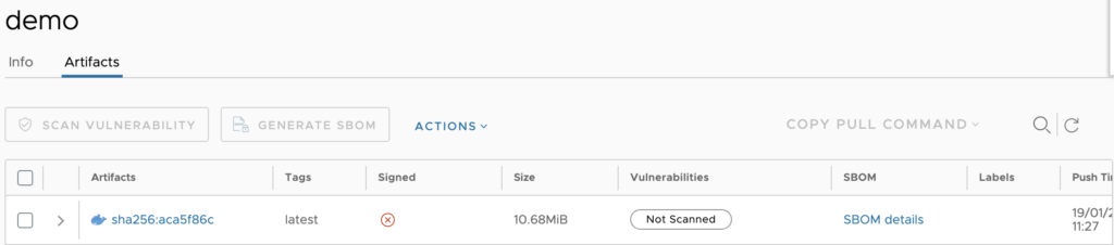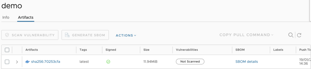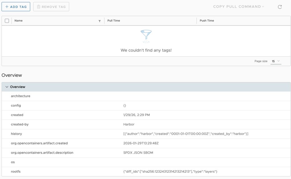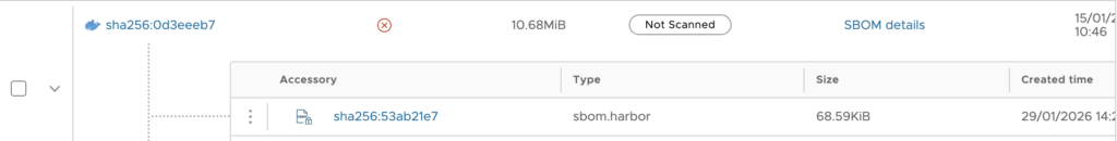 Manually generating an SBOM is a good practice, but automating the process is even better. The private registry can automatically generates the SBOM for you once an image is pushed to the desired project.