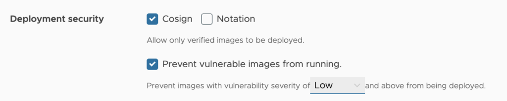 With this configuration, images cannot be pulled if their level is equal to or higher than the selected level of severity.